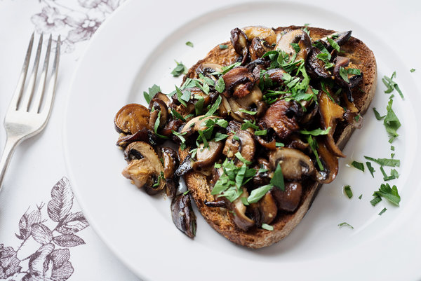 4) Creamy mustard mushrooms on toast with a glass of juice